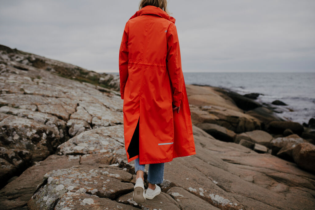 Didriksonsin kierrätysmateriaaleista valmistettu Nadja Coat säväyttää upean kirkkaalla värillään, mutta värivaihtoehtoja löytyy myös klassisempaan makuun. Takki on täyspitkä, mikä tekee siitä toimivan toverin säillä, jolloin pelkällä kesämekolla ei vielä tarkene. Rento istuvuus, kaksisuuntainen vetoketju, kaulukseen rullattava huppu ja isot taskut tekevät takista monikäyttöisen tilanteesta riippumatta. Takki pitää vettä sekä tuulta ja sen helmaosassa on napit, jotka sulkemalla helmasta saa muodostettua lahkeet. Takin pitkä helma ei siis haittaa, vaikka menopeli vaihtuisikin pyörään päivän mittaan.