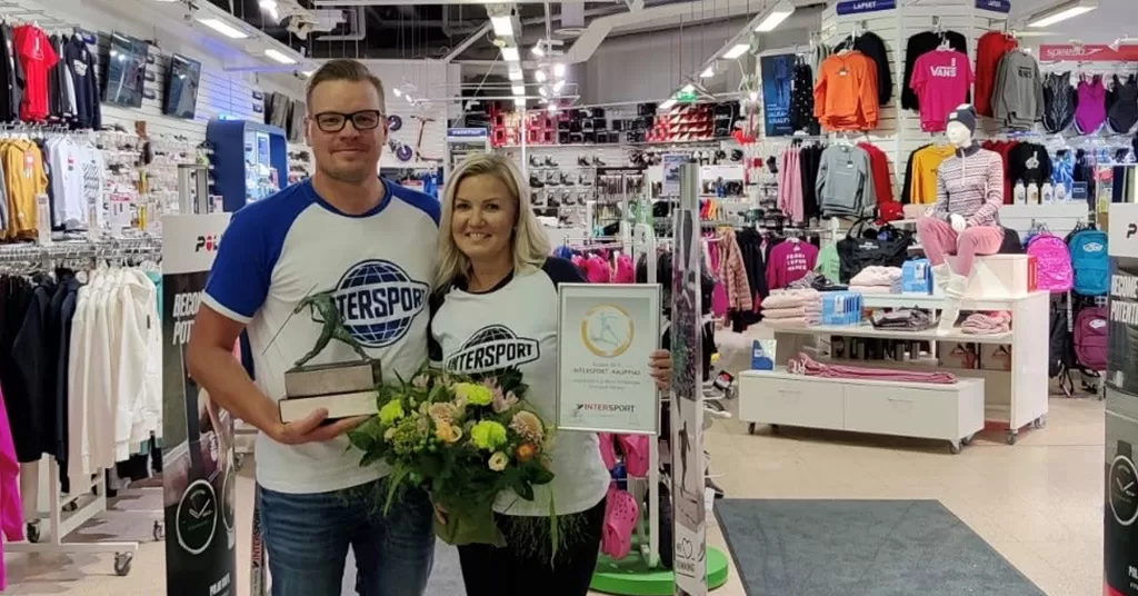 Juha ja Mervi ovat toimineet Keravan Intersport-kauppiaina 2015 keväästä lähtien. He kertovat, että palkitseminen tuli heille täytenä yllätyksenä. ”Teemme parhaamme henkilökuntamme kanssa kaupalla, että voimme täyttää asiakkaidemme toiveet ja palvella heidät mahdollisimman hyvin. Hienoa, että se on huomattu niin ketjussa kuin asiakkaiden tyytyväisyytenä.”
