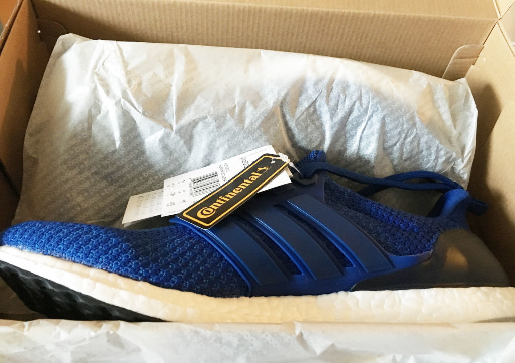 Kävin hakemassa kengät postista sateisena ja tuulisena lauantaina. En etukäteen tiennyt millaiset kengät minua olisivat odottamassa, Ultra Boostia kun saa monessa erilaisessa kuosissa. Riemukseni laatikosta löytyivät kirkkaan sähkönsiniset lenkkarit. Ensituntemuksiani: Kengät tuntuvat laadukkailta kädessä. Kengännauhat ovat litteät ja miellyttävät solmia kiinni. Kengän kangas on punottu, villasukkamaisen näköinen. Jalkaan laitettaessa tuo villasukkamainen tekstuuri (primeknit) tuntuu hengittävältä ja kenkä itsessään napakalta.
