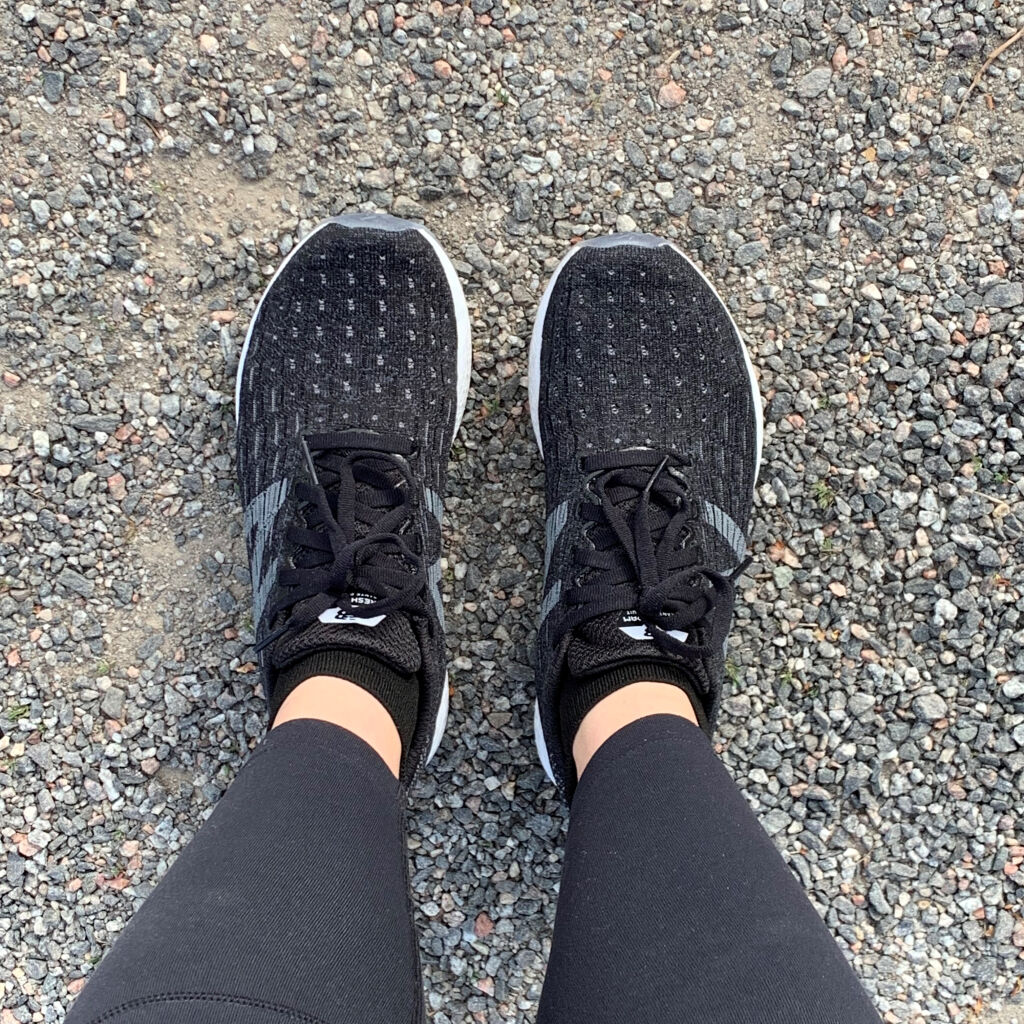 Kun paketti saapui postiin ja avasin laatikon, ensivaikutelma oli hyvä. Kengät ovat hyvännäköiset ja sopivat väriltään kaikkien treenivaatteiden kanssa. Kengät ovat myös tosi kevyet. Sopivat hyvin omaan jalkaan. Sukkamainen ja hengittävä päällyskangas tekee kengästä mukavan ja ilmavan.