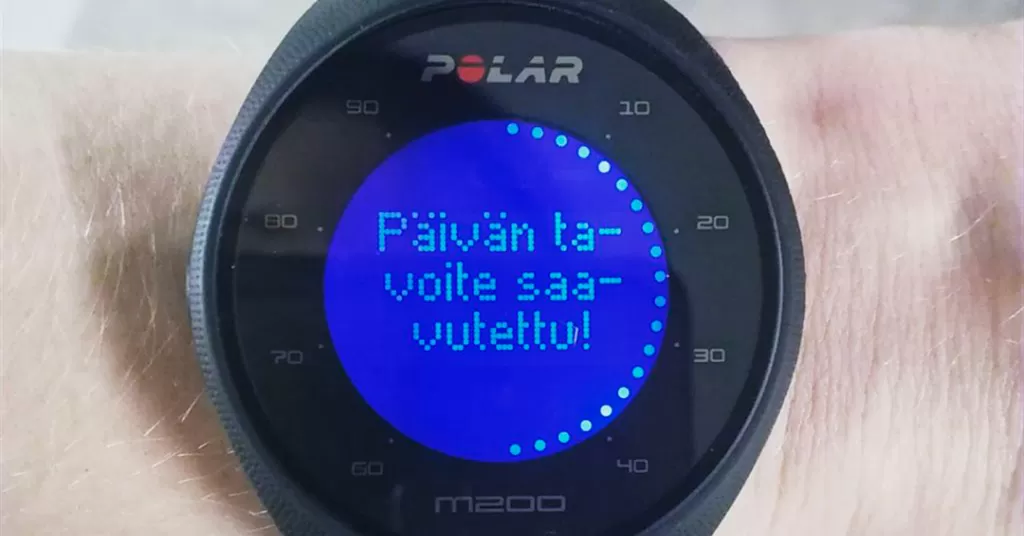 Juoksutreenin aikana kello huomauttaa värinällä, mikäli syketaso on liian korkea esimerkiksi alkuverryttelyn aikana. Tämä on loistava ominaisuus! Itseni tulee herkästi aloitettua liian lujaa. Kello toimii myös aktiivisuusrannekkeena. Se huomauttaa värinällä kun on ollut paikallaan liian pitkään. Toisissa kelloissa joita olen nähnyt, on yleensä ollut piippausääni, kun taas Polar M200 on tässä mielessä huomaamaton. Ominaisuus on plussaa itselle, sillä valitettavasti teen istumatyötä.