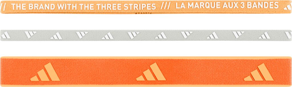 Kolmen kappaleen paketti Adidaksen hiuspantoja eri leveysvaihtoehdoilla. Pannoissa oleva silikoni estää liukumisen.