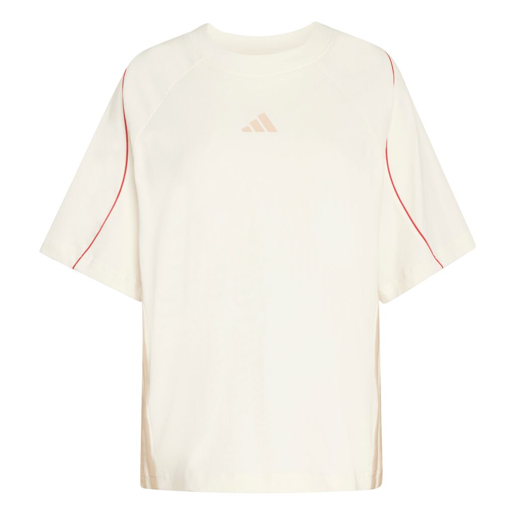 Tämä t-paita on valmistettu pehmeästä single jersey -kankaasta. Paidassa on satiiniyksityiskohtia, väljä istuvuus ja klassiset kolmiraidat paidan kummallakin sivulla.