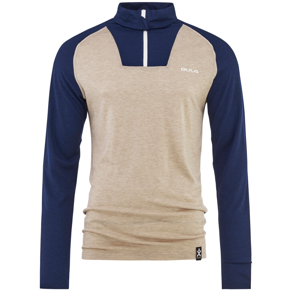 Bula Retro Merino Wool Halfzip Sweater on villasekoitteinen peruspusero retrotyyliin. Se on valmistettu merinovillasta ja teknisistä kuiduista; yhdistelmä, joka luo kestävämmän, kosteutta siirtävän vaatteen. Korkea kaulus, jossa on vetoketju, helpottaa kehon lämpötilan säätelyä. Litteät, joustavat saumat estävät hankautumista, ja raglanhihat takaavat paremman liikkumisvapauden.