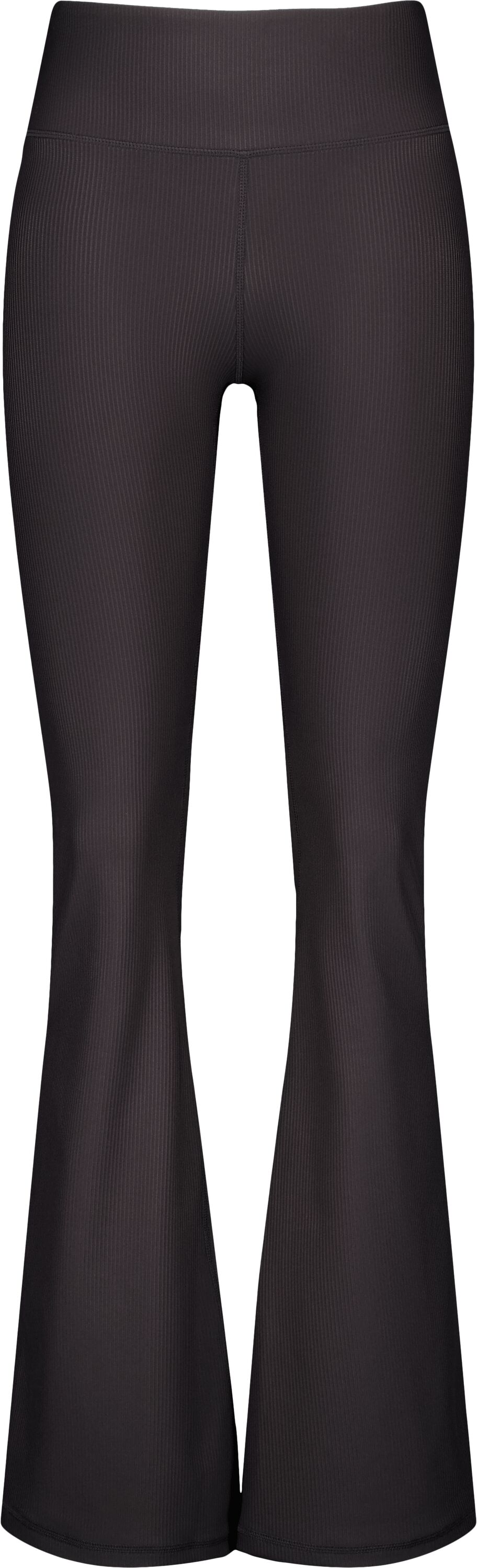 Naisten rib-neulostrikoot levenevällä lahkeella. Valmisetttu pehmeästä ja joustavasta materiaalista, mikä antaa hyvän liikkumisvapauden joogaan ja pilatekseen. Takaosan V-muotoiltu sauma antaa imartelevan siluetin.
