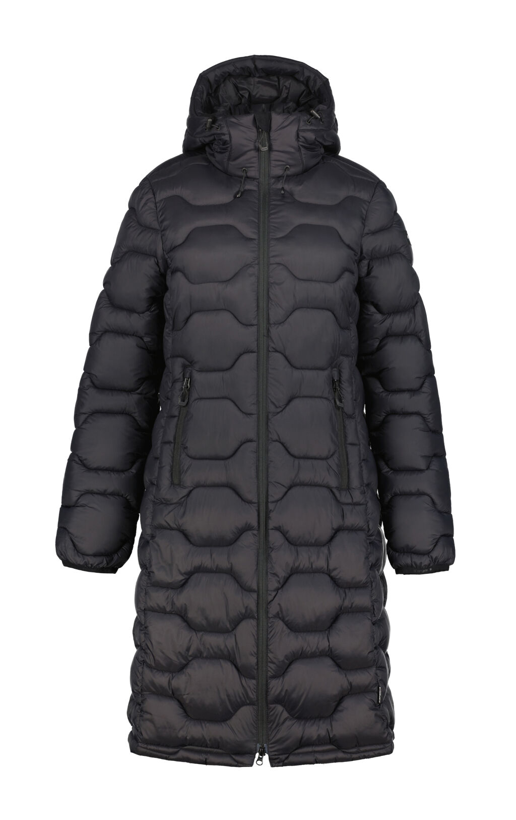 Tikattu pitkä keinountuvatakki naisille.Toppaus on untuvajäljitelmää, joka tarjoaa tehokkaan lämmöneristyksen, mutta tuntuu kevyeltä.