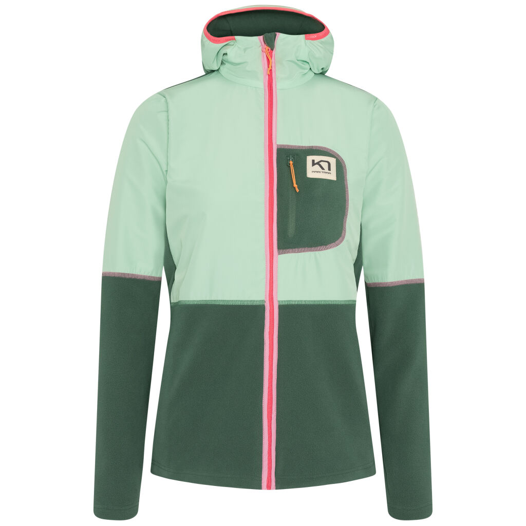 Kari Traa Henriette Hybrid Jacket on fleecetakki kylmempiä öitä ja aamuja varten. Hybriditakki toimii kun lähdet vaellukselle, istut nuotion äärellä tai hoidat asioita kaupungilla. Tässä lämmittävässä täysvetoketjullisessa fleecetakissa on kaksi sivutaskua ja vetoketjullinen rintatasku, johon voit laittaa avaimesi, puhelimesi ja huulirasvan - se on monikäyttöinen asu joka tilanteeseen.