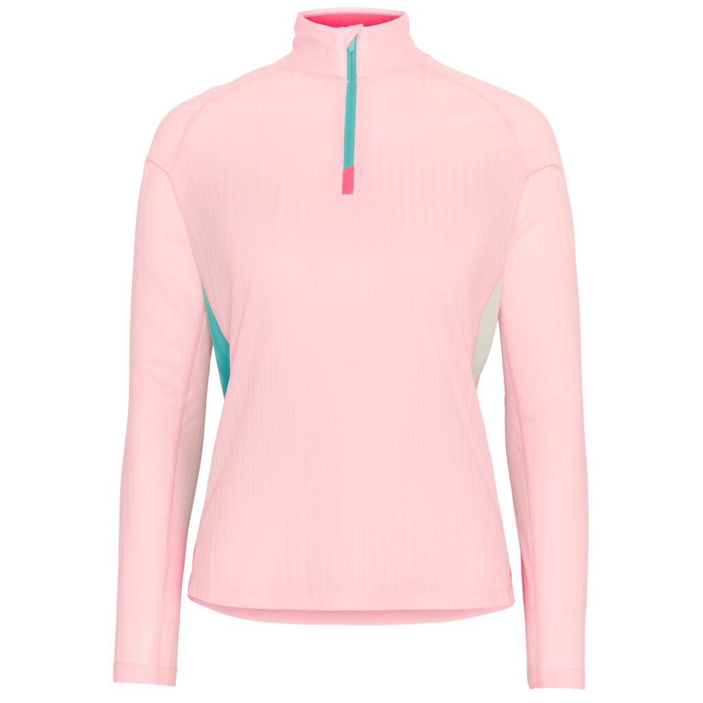 Kari Traa Leah Half Zip on tekninen paita, jonka nopeasti kuivuva ribbineulos ja korkea vetoketjukaulus tekevät tästä täydellisen kerroksen lenkkipolulle ja treeniin.
