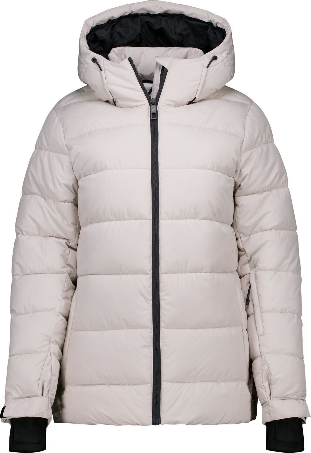 Naisten laskettelutakki vettähylkivällä pinnalla ja lämpimällä synteettisellä täytteellä. Kiristysnyöri vyötäröllä. Ei lumilukkoa.