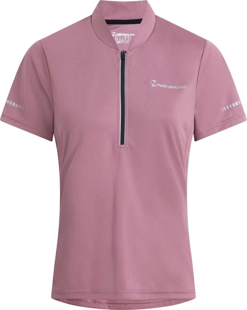 Naisten hengittävä lyhythihainen paita pyöräilyyn. Puolivetoketju mahdollistaa helpon ilmanvaihdon säädön ja vetoketjullinen takatasku tarjoaa kätevän säilytyspaikan tärkeille tavaroille. Pystykaulus tuo lisäsuojaa ja avoin helma takaa esteettömän liikkumisen.