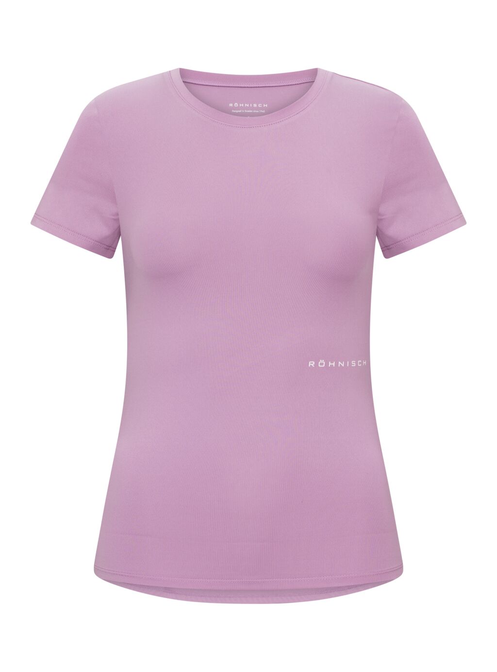 Naisten t-paita kierrätetystä kankaasta mikä hengittää ja siirtää kosteutta iholta. Edessä ja niskassa Röhnisch -logoteksti.