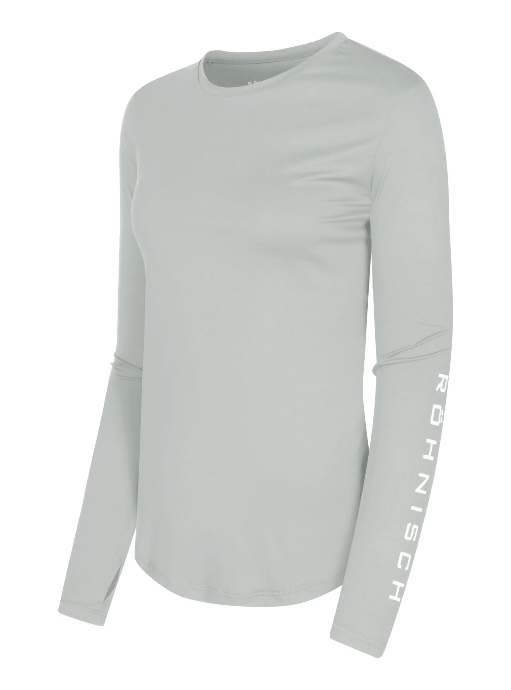 Hieman väljä naisten pitkähihianen paita kierrätetystä materiaalista. Kangas hengittää hyvin ja siirtää kosteutta iholta. Hihoissa Röhnisch -teksti.