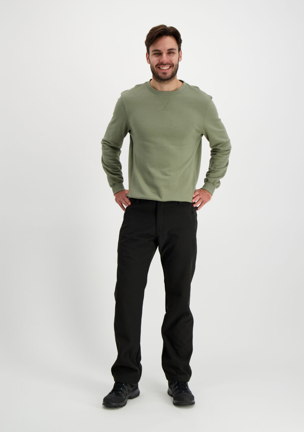 Monikäyttöinen miesten Softshell -housu. Lämmin, nukattu sisäpinta. Vettä hylkivä ja tuulta pitävä WR -viimeistys.