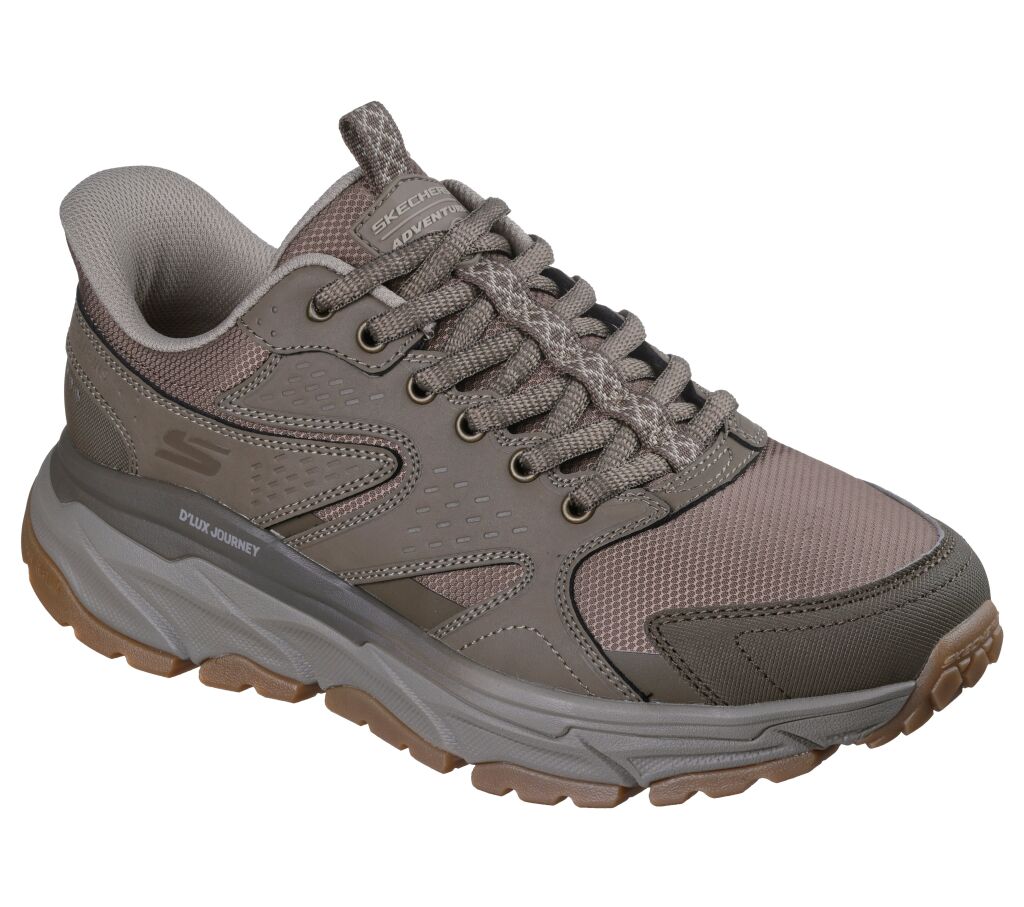 Varustaudu ulkoilmaseikkailuihin mukavuudessa ja tyylikkäästi Skechers Hands Free Slip-ins® Relaxed Fit® -kengillä: D'Lux Journey - Sand Point Creek. Heel Pillow® -tekniikalla suunniteltu tämä kestävä malli sisältää vedenhylkivän nahan ja mesh-päällisen nauhoituksella edessä sekä pehmustetun Skechers Air-Cooled Memory Foam® -pohjallisin.